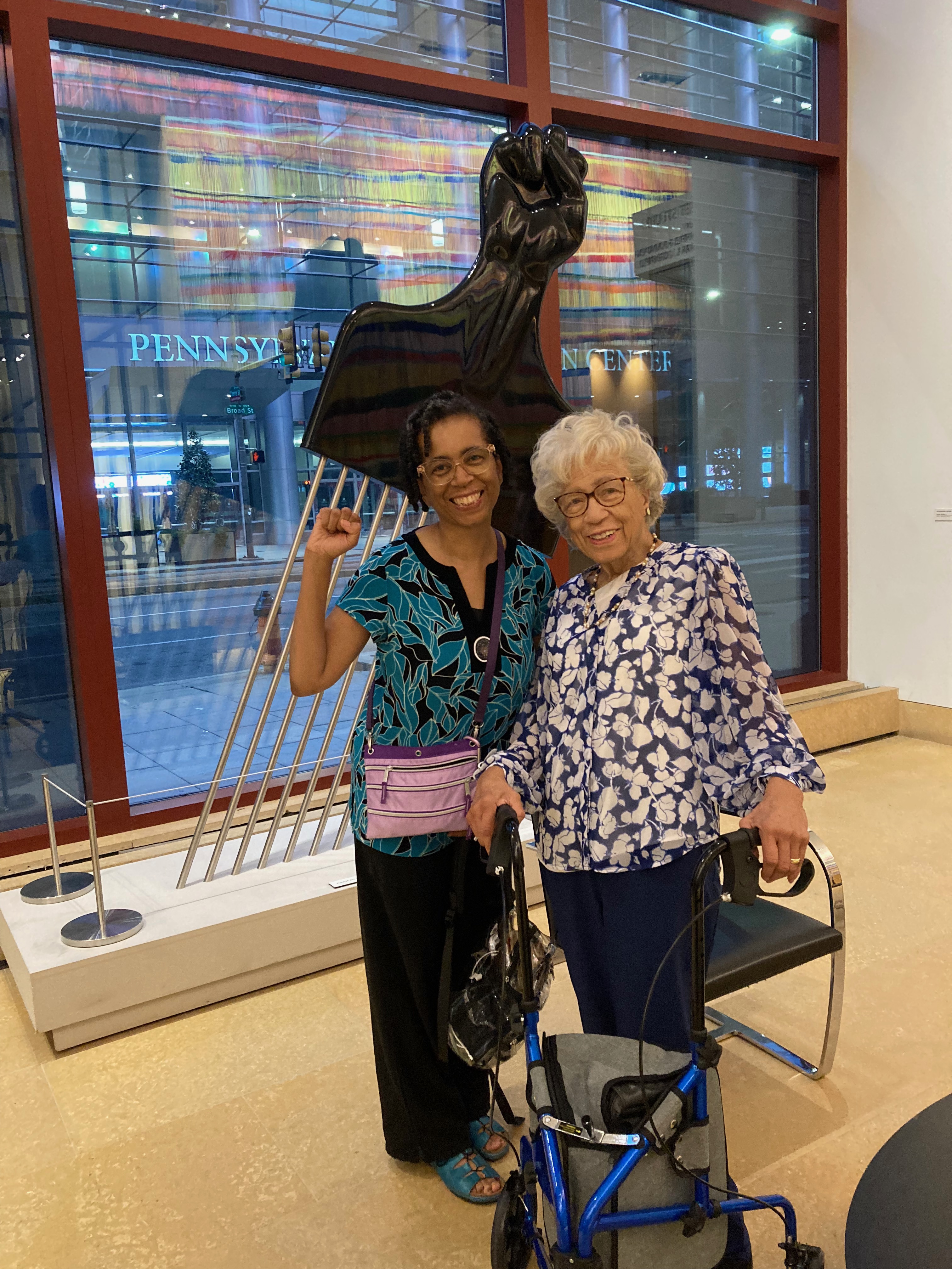 Above: Nadine and Marlene Patterson at the PAFA (Pennsylvania Academy of Fine Arts) in front of artwork by Hank Willis Thomas, “All Power to the People”.