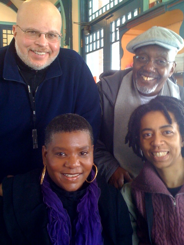 Three persistent writers have joined the second Writing 4Film Workshop. Clockwise from the left is Darrell Henderson, Milton McGriff, Nadine Patterson(me!) and Pheralyn Dove. Big shout out to High Point Cafe at Allens Lane for making us feel right at home. Watch this space for more information on their projects and other Philadelphia Independents!