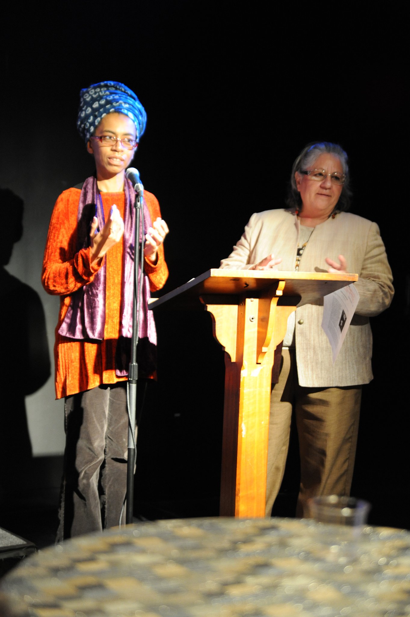 After absconding with illegal drugs that wash ashore on the Mayan coast, three Mexican fishermen sell them to the corrupt local police for a handsome sum. An experimental documentary that uses fictional elements, Al Más Allá places the personal moral degeneration of the fishermen in the political context of a nation struggling on the edge of the global economy. Lyrical, visually intriguing, and entertaining, Al Más Allá is at once reportage into the expansive world of drug trafficking across Mexico and an ironic indictment of the cult of the documentary filmmaker whose romantic visions of herself and her mission often obscures the very truth she seeks. Lourdes Portillo will not be in attendance due to personal emergency. [Below is a photo from event. Nadine Patterson and Veronica Castillo-Perez lead discussion after Al Más Allá.]