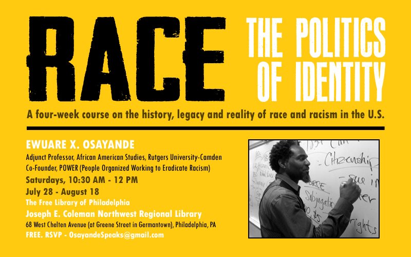 Course Instructor: Ewuare X. Osayande, Adjunct Professor, African American Studies, Rutgers University-Camden; Co-founder/Director, POWER (People Organized Working to Eradicate Racism).