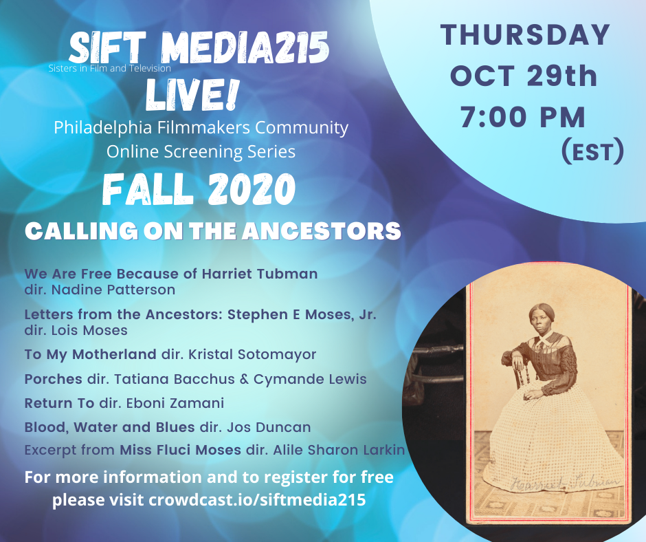 CALLING ON THE ANCESTORS is the final screening of our Fall 2020 season of SIFTMedia 215 LIVE! The program is a collection of short films by members and affiliates of our collective. We hope that our last screening of the fall will be a time to reflect on our ancestors and on all the gifts they have given us.